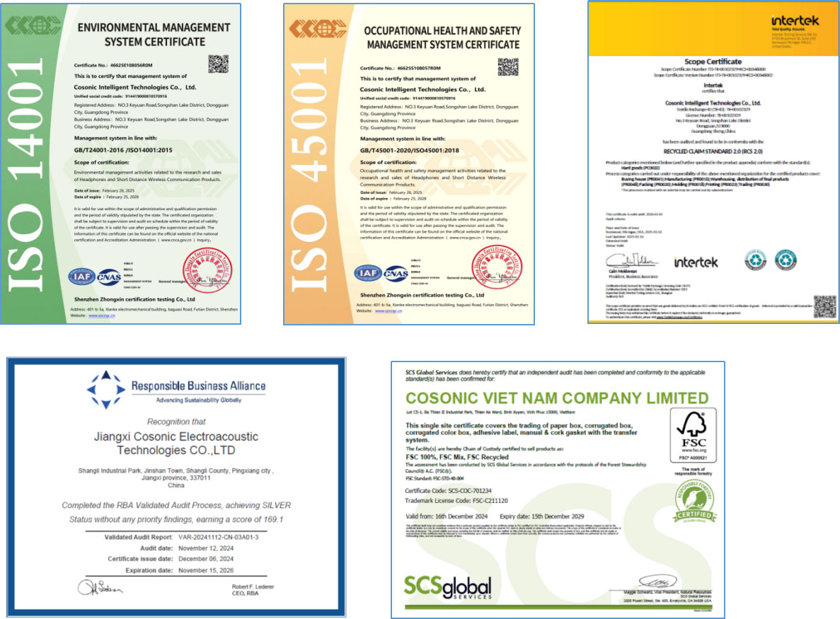 认证证书获取情况:公司已通过ISO14001、、ISO45001、、RCS、、、RBA、、FSC等社会责任相关的认证。。。。(注:以下只是部分工厂认证证书图片,,,,集团旗下各子公司都有相关认证证书)