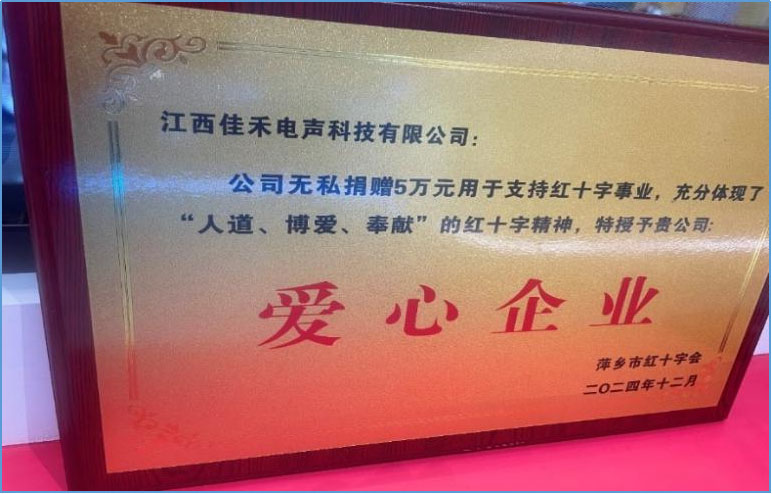 •东莞佳禾2024年清洁能源使用占比超过30%2024年8月江西佳禾电声科技有限公司向上栗县仁爱医疗公益捐款五万元(¥50000.00)